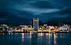 A long exposure photograph of Bodø city at night with dramatic clouds