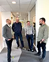 Daglig leder Stian Frivåg (til venstre), med noen av de 20 ansatte på Myre.