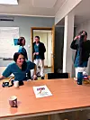 Veldig godt humør. God stemning på kontoret. Og de fleste av kollegene har vært her lenge.